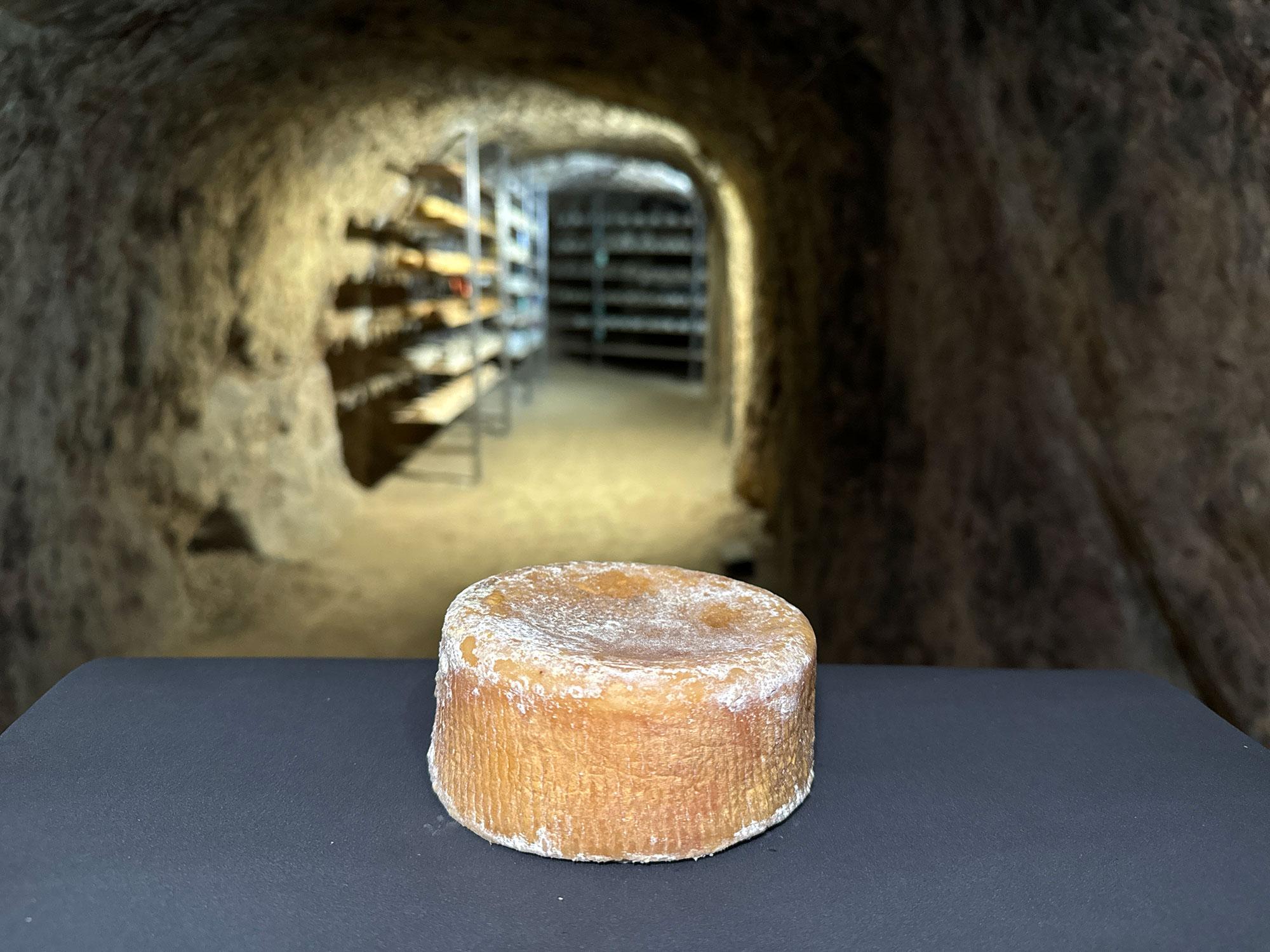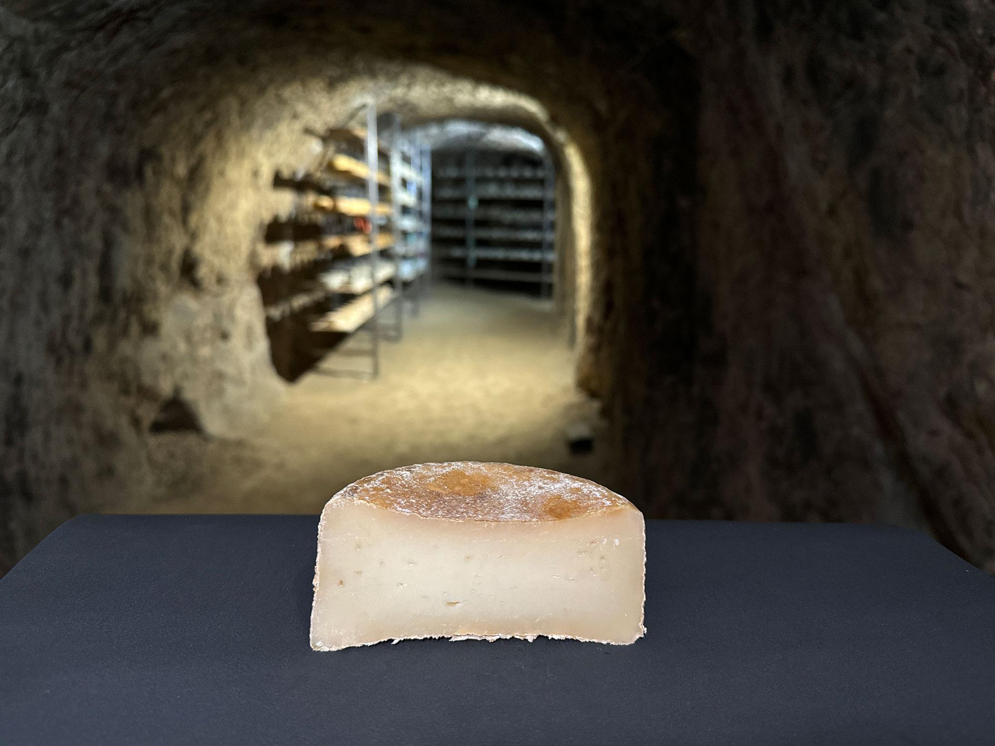 Afinado mínimo 12 meses en la cueva. Las condiciones naturales de temperatura y humedad modelan su aspecto rústico.