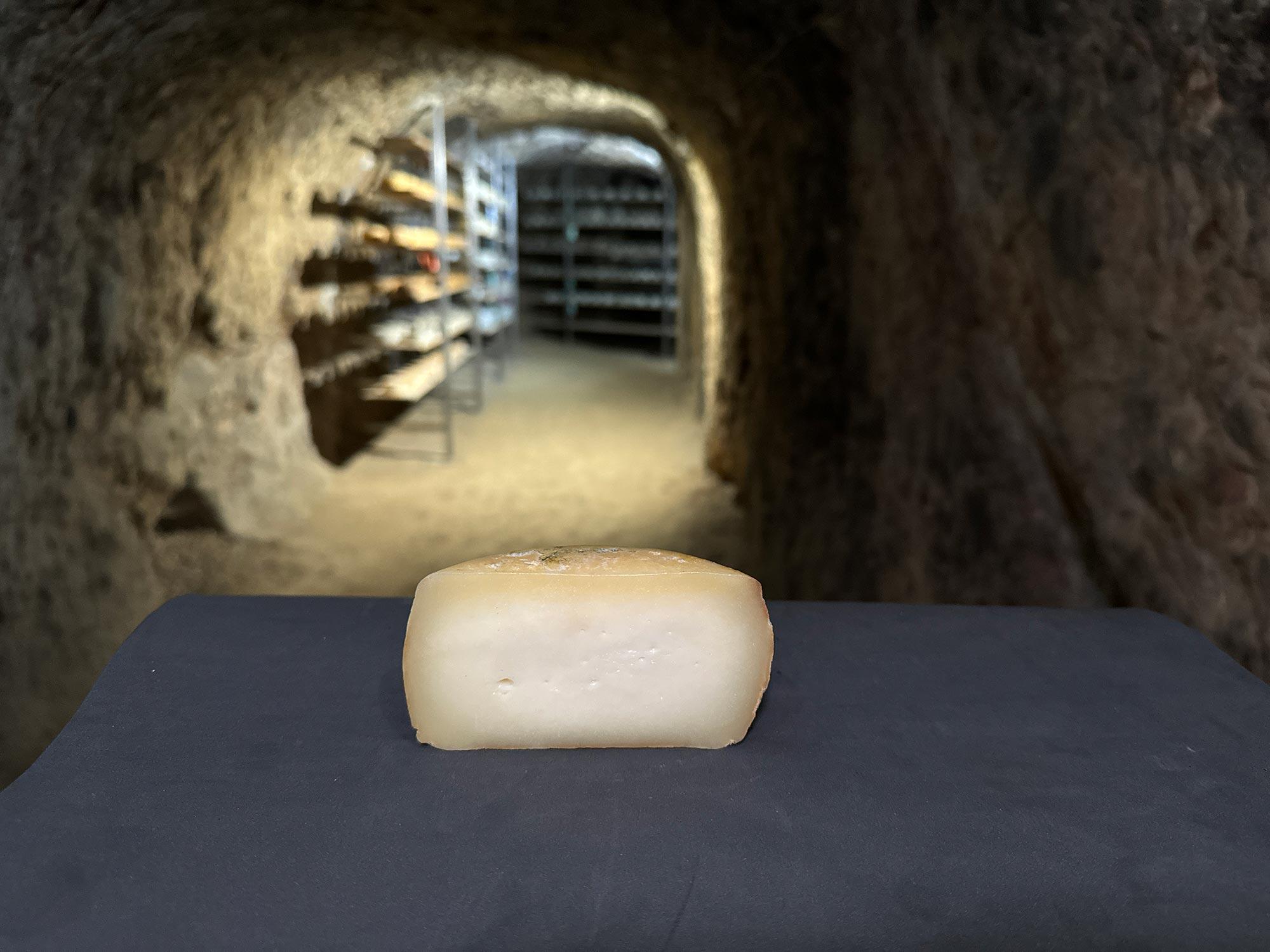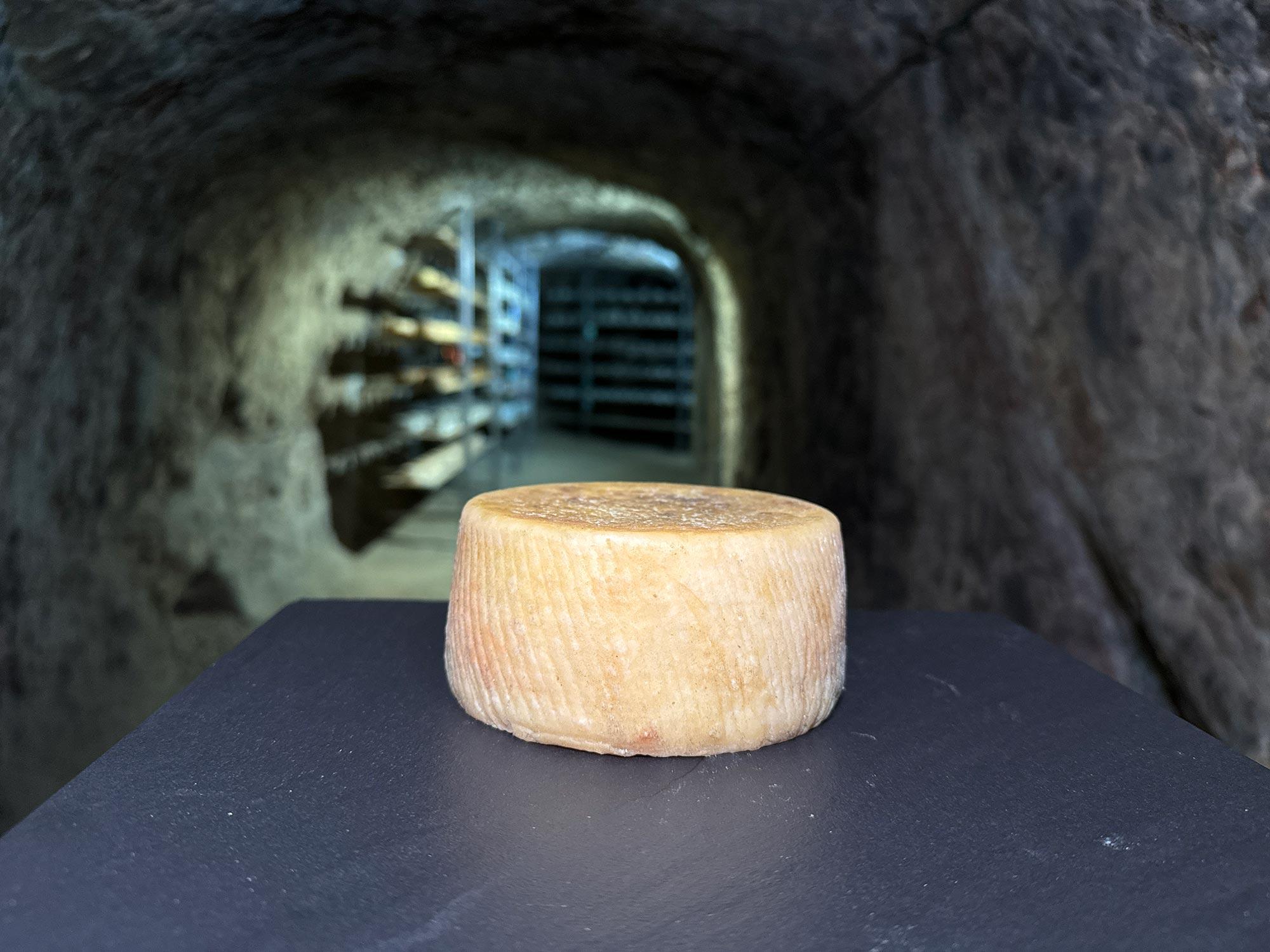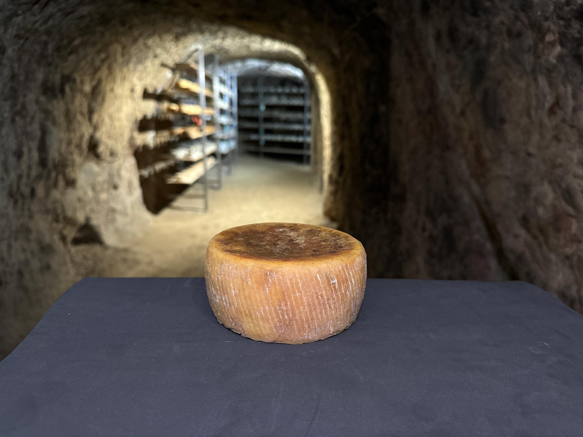 Afinado mínimo 12 meses en la cueva. Las condiciones naturales de temperatura y humedad modelan su aspecto rústico.